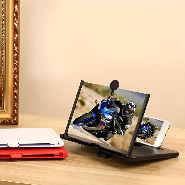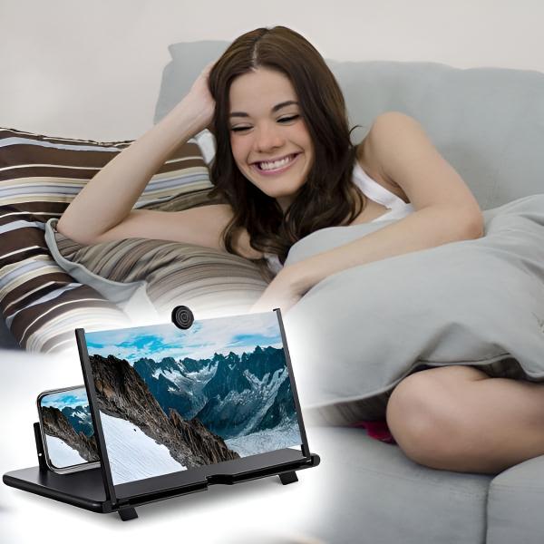 O ampliador de ecrã para telemóvel de 9,8 polegadas utiliza tecnologia ótica física para exibir imagens, vídeos e outros ficheiros do telemóvel.