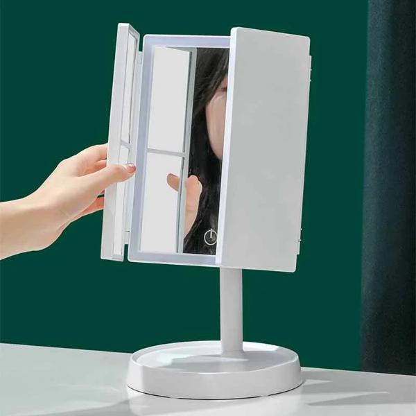 Obtenha uma maquilhagem impecável com o nosso espelho dobrável e iluminado por LED.