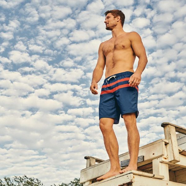 Feito de 88% poliéster reciclado e 12% spandex, os nossos calções de banho não são apenas confortáveis, mas também ecologicamente corretos.
